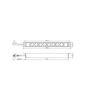 Regleta rack 19" 1U, 9 tomas sin interruptor.