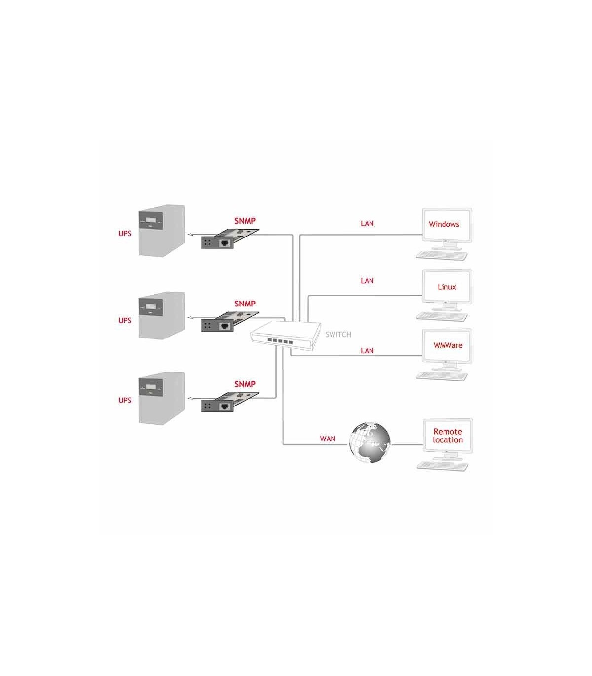 Interfaz SNMP interna compatible con UPS EVO DSP MM, EVO DSP MM RM, EVO DSP PLUS MM-TM-TT, EVO DSP RT, para ser instalado en una ranura adecuada, permite la conexión y configuración de% u2019UPS en una red LAN, incluye cd con software de gestión para varios sistemas operativos: netility, Clientmate, Snmpview, sms server, time server, UPS Mib.
