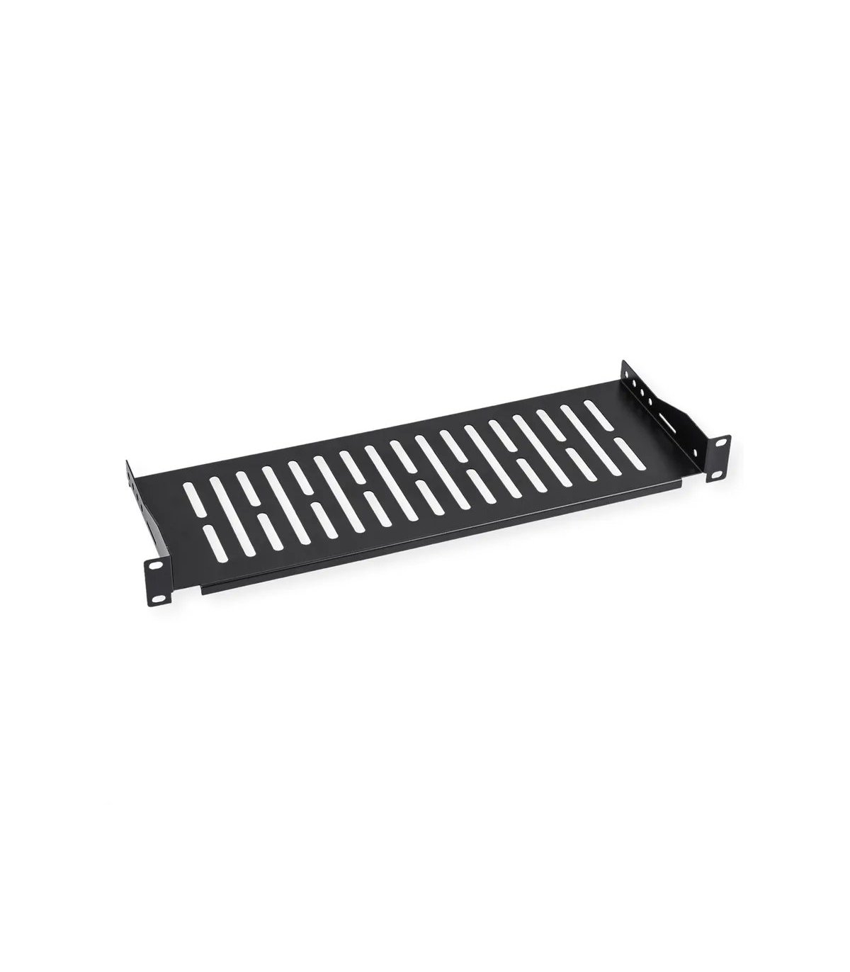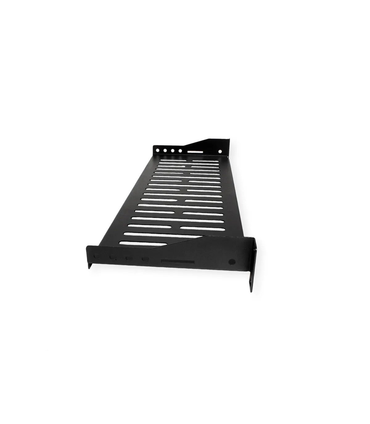 Fabricada en metal pintado en negro, es ideal para soportar equipos ligeros como routers, switches o NAS.