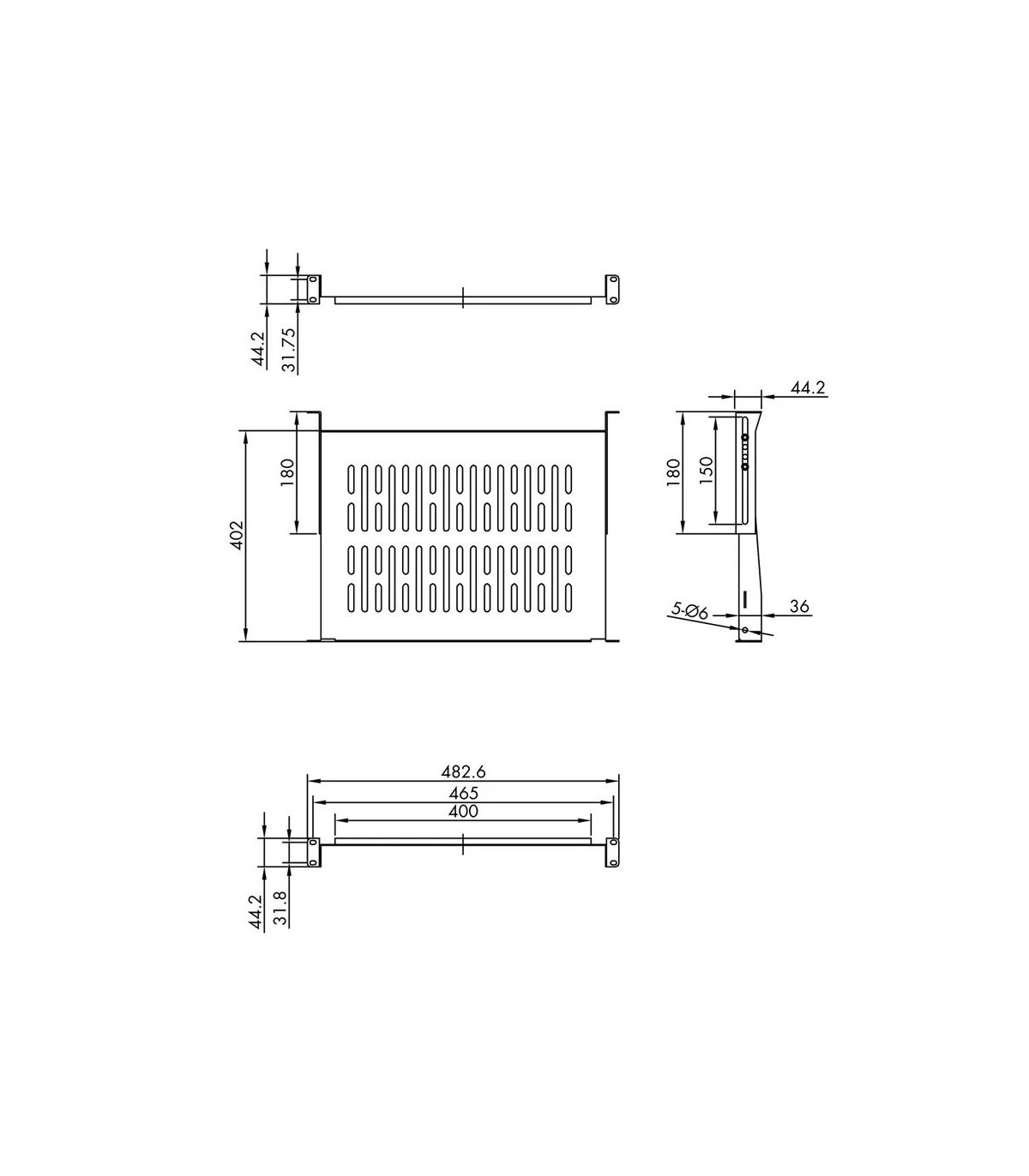 Bandeja fija 1U 19" para rack suelo y mural. Fijación 4 puntos.