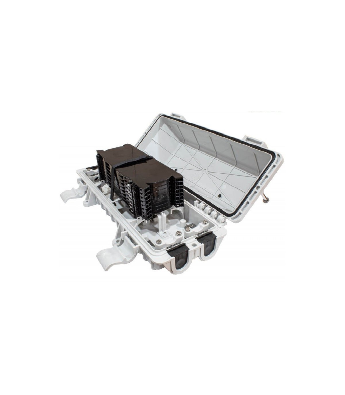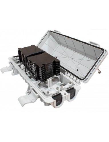 Caja de Empalme Acceso Universal con 4 puertos y 128 fusiones.