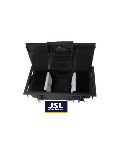 Caja de suelo para interruptores y enchufes de 45×45 en termoplástico de alta resistencia (Nylon 6), con una placa de acero galvanizado en la cubierta para soportar mayores pesos.
