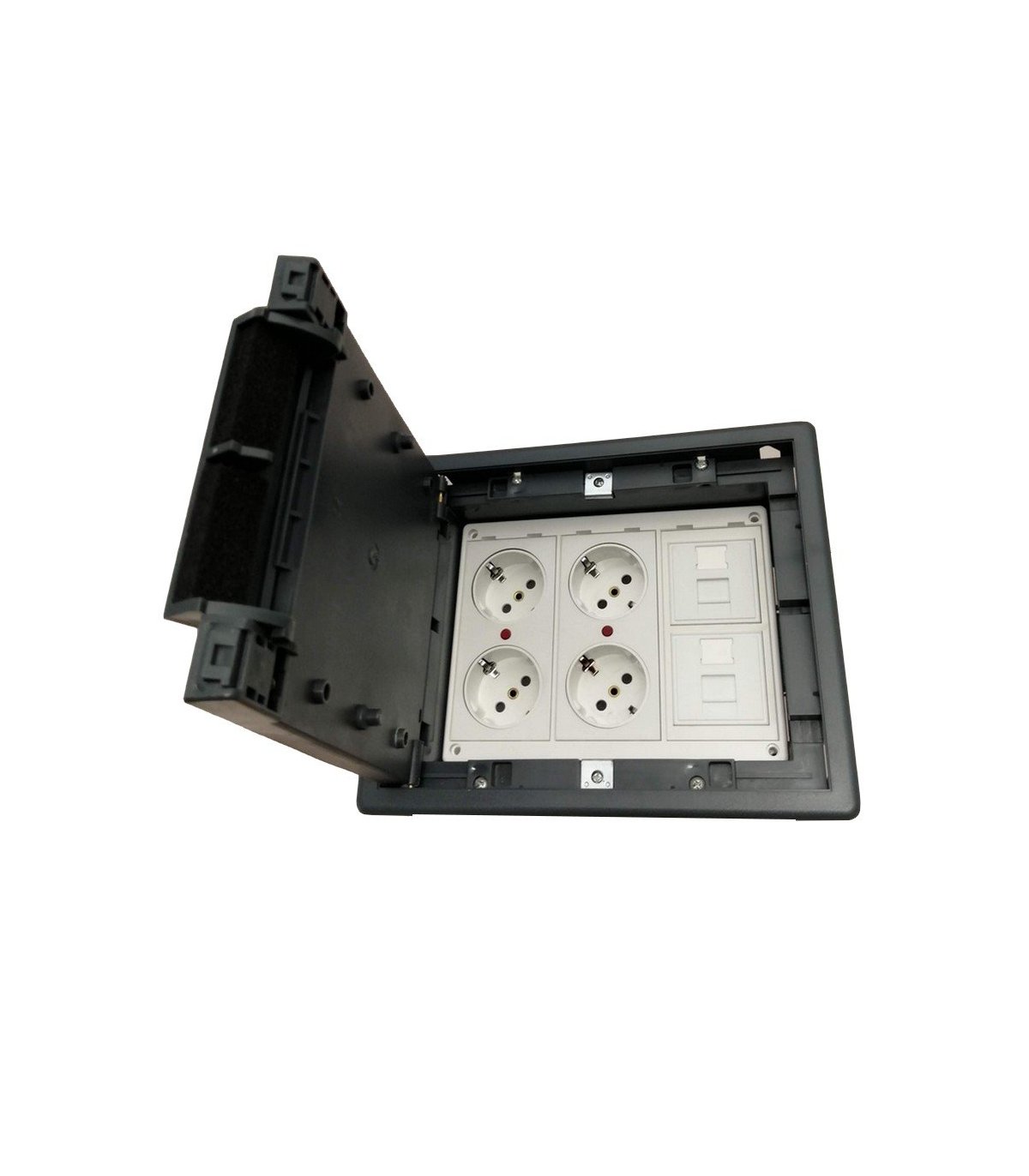 Caja modular de 3 elementos para suelo con 2 schuko doble color blanco, y 2 placas para 1 conector RJ45 Univeral