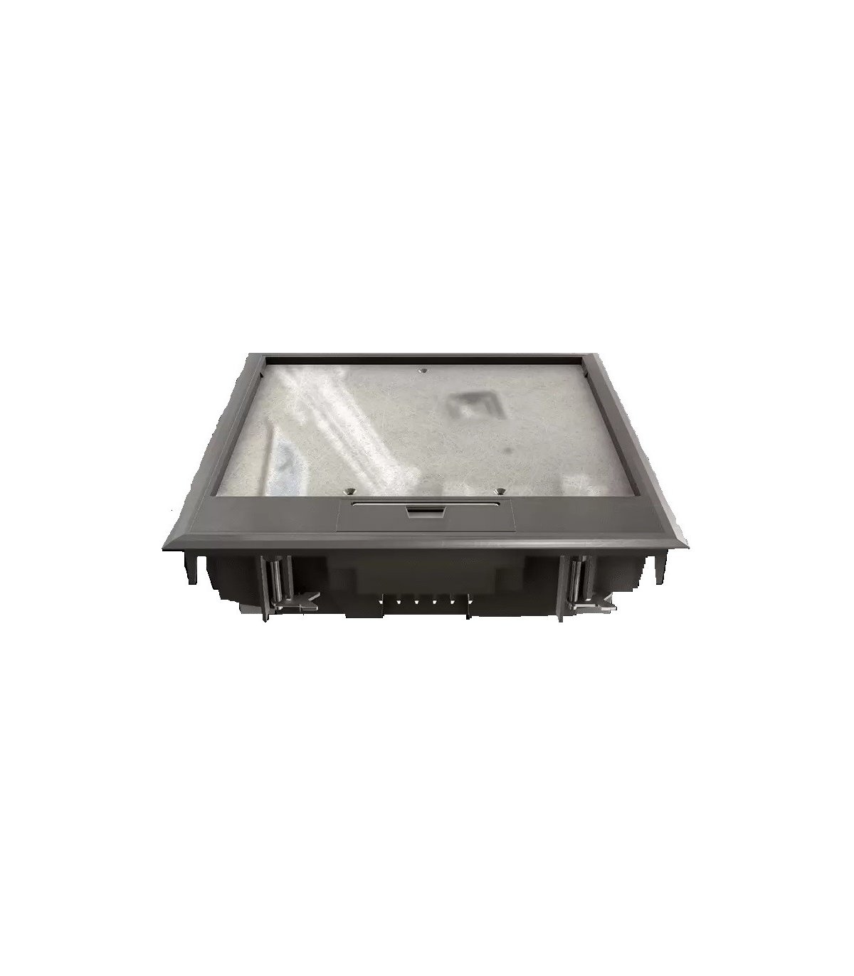 Cajas de suelo para interruptores y enchufes de 45×45 en termoplástico de alta resistencia (Nylon 6), con una placa de acero galvanizado en la cubierta para soportar mayores pesos.