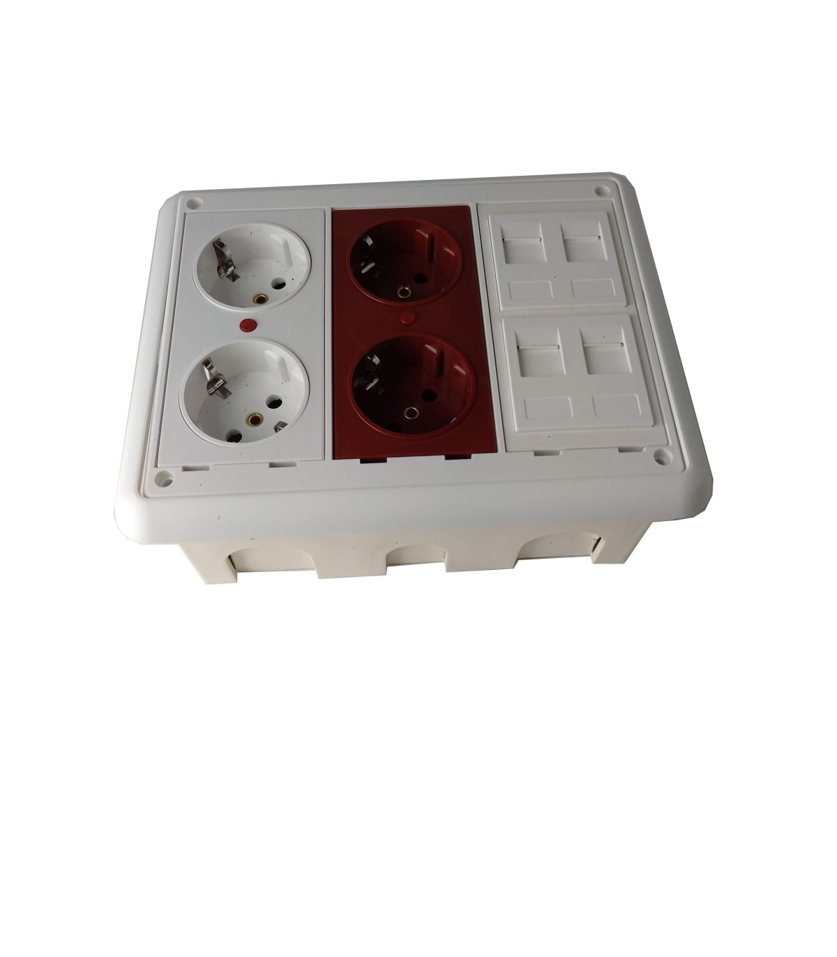 Caja modular de 3 elementos con 1 schuko doble color blanco, 1 schuko doble para SAI y 2 placas para 2 conectores RJ45 Univeral
