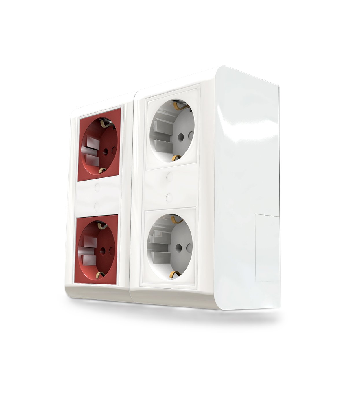 Kit Caja de superficie para pared 2 Schukos y 2 schukos rojos