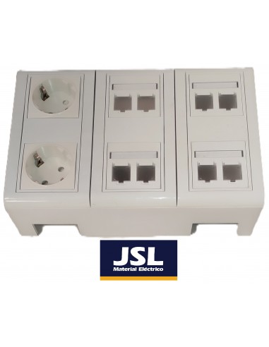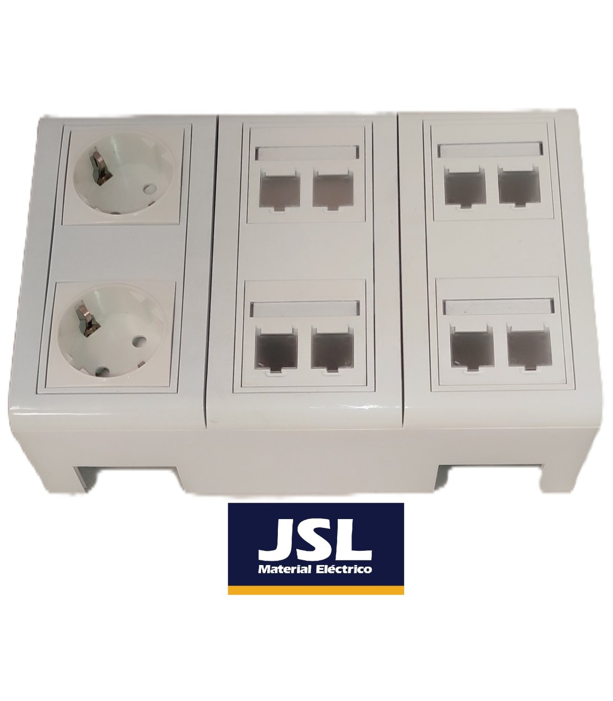 Kit Caja de superficie para pared 2 Schukos blancos y 4 RJ45 dobles Tipo Keystone (no incluidos)
