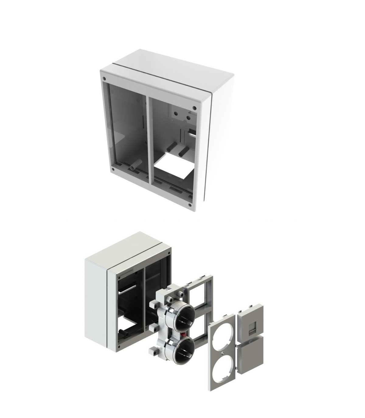 * La caja está fabricada con plásticos auto extinguibles clase V.0. según norma UL 94.