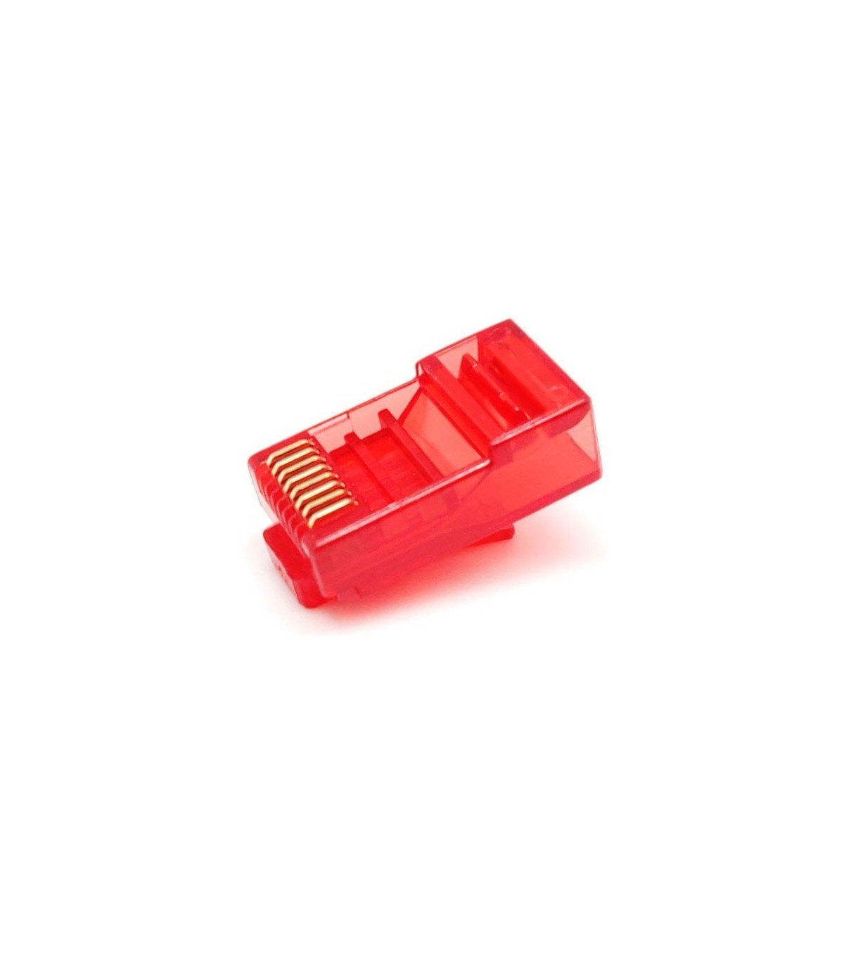 Conector macho RJ45 CAT6 UTP Sin/Guía ROJO. bolsa 100 unidades.