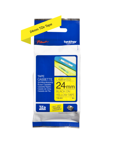Cinta Laminada Ancho 24 mm Texto Negro Fondo Amarillo