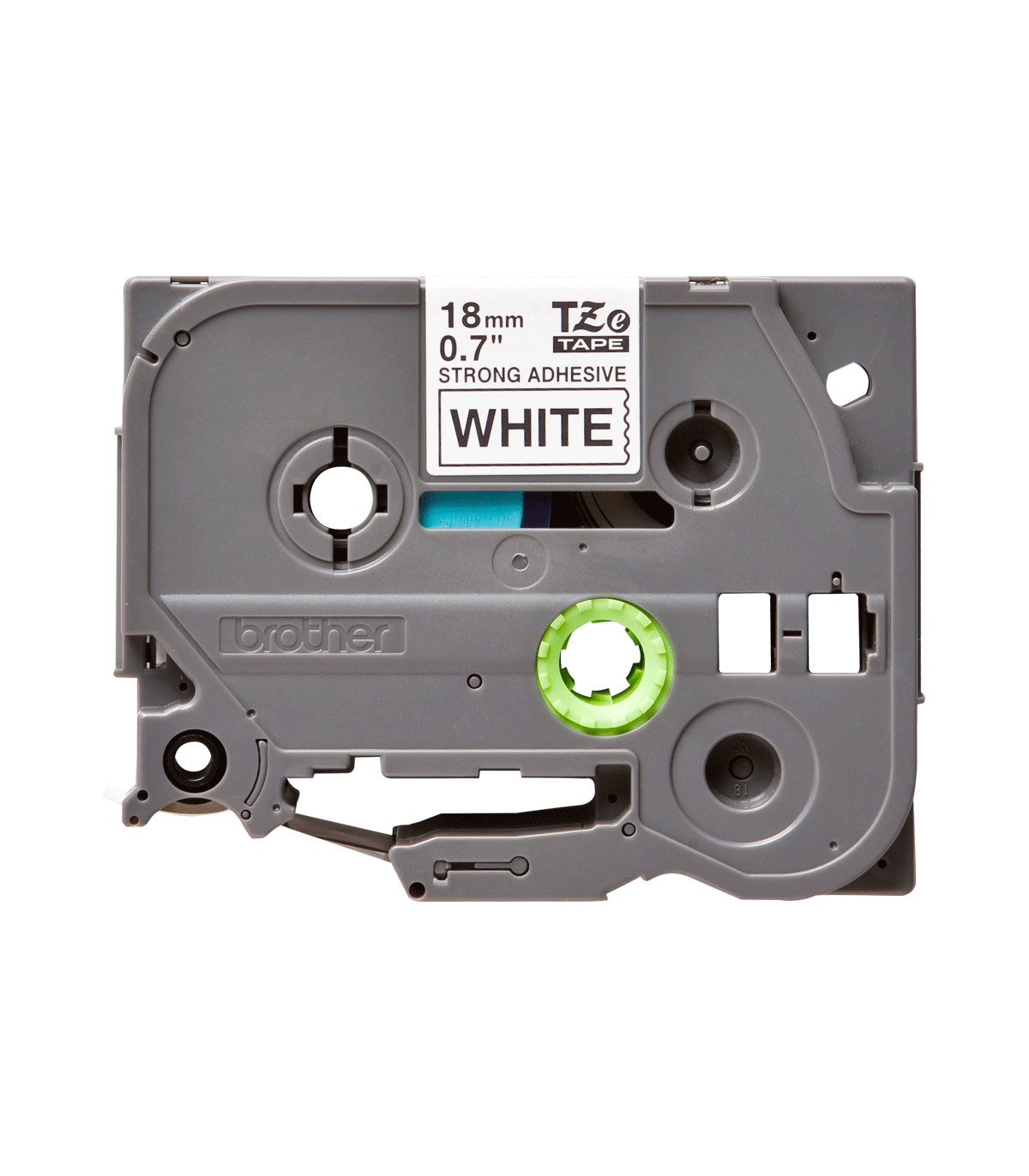 Cinta laminada súper adhesiva. Texto negro sobre fondo blanco. Ancho: 18 mm. Longitud: 8 m