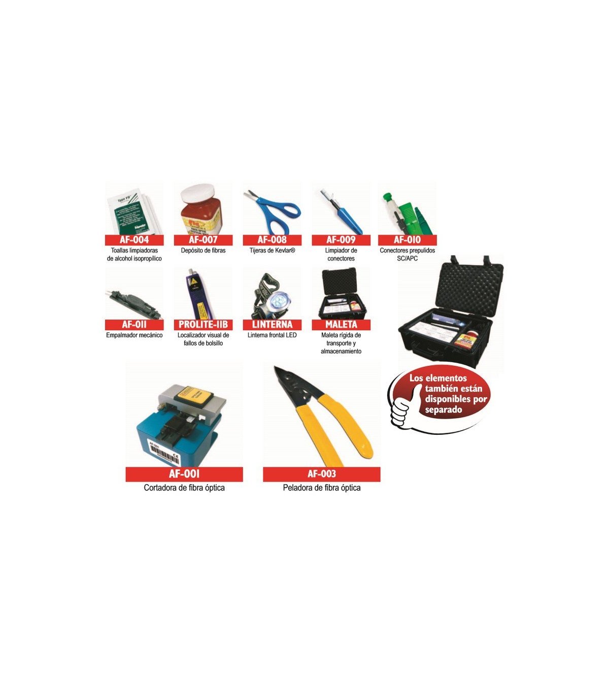 Kit de Conectorización maleta que contiene las herramientas y utillajes más importantes para hacer conexiones de forma económica de fibra óptica.