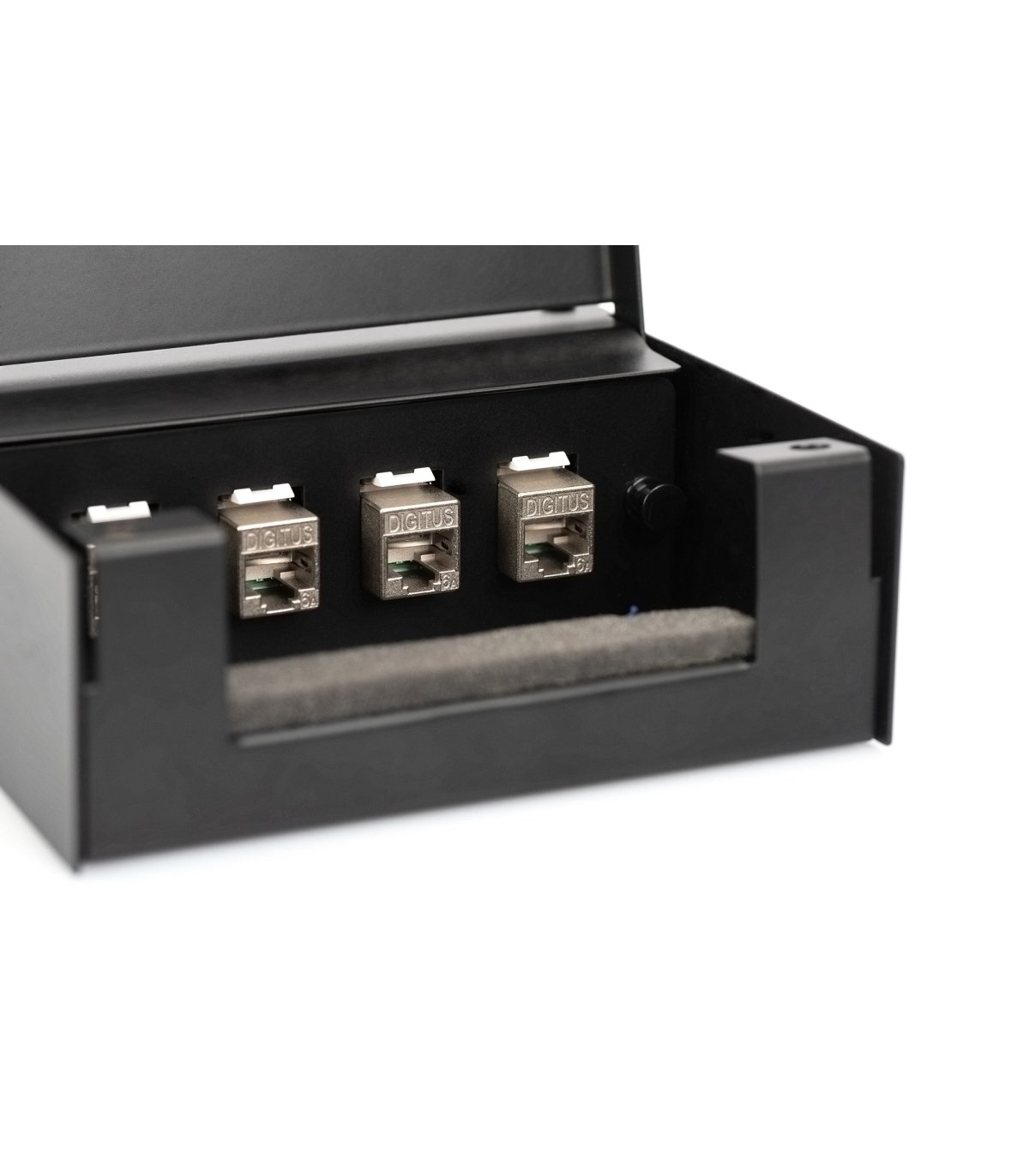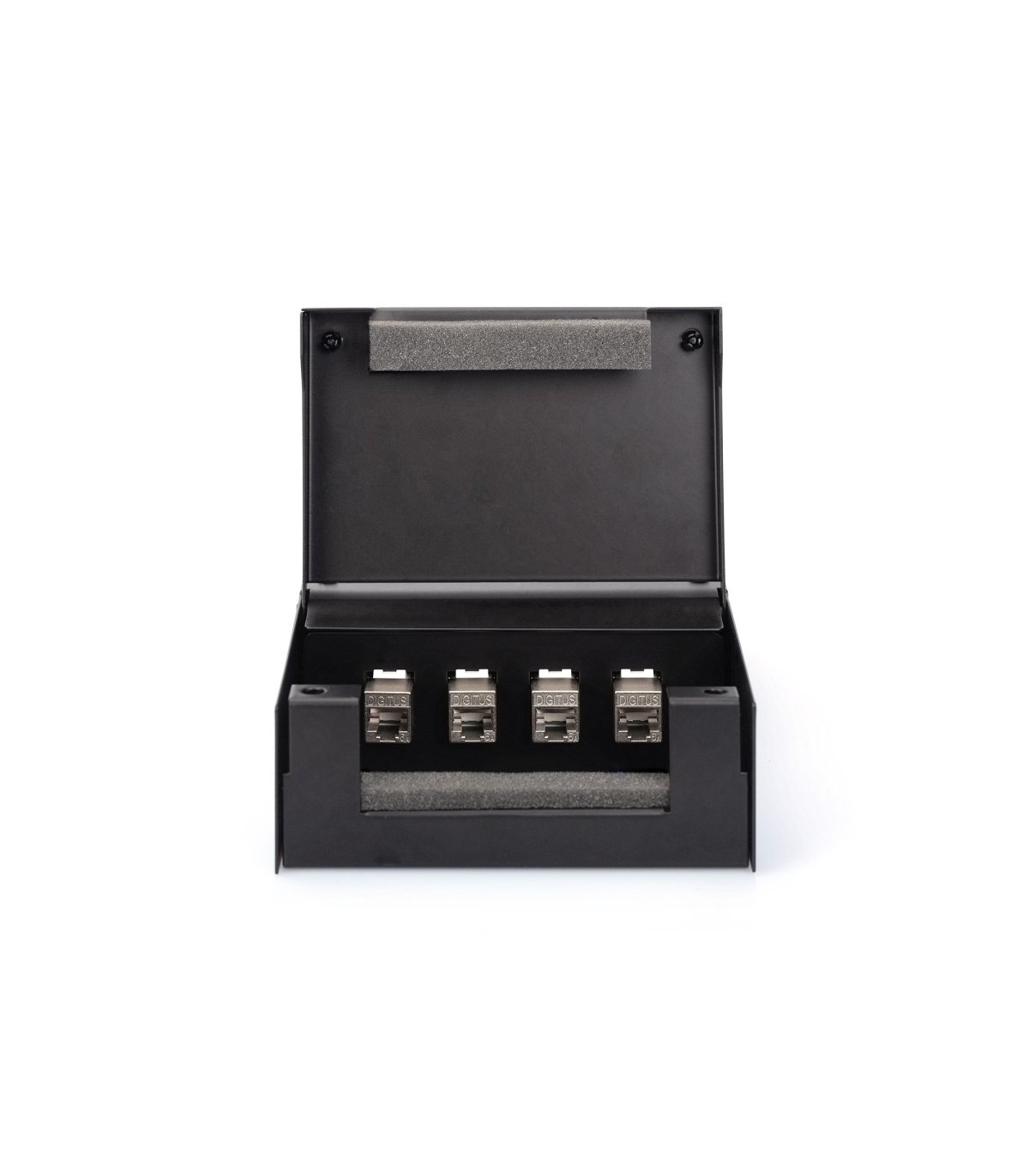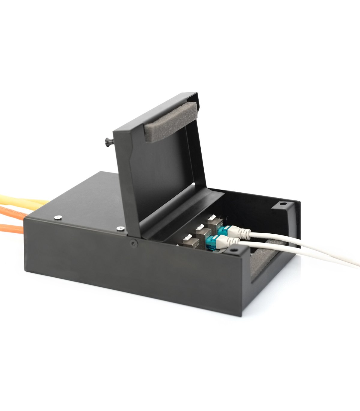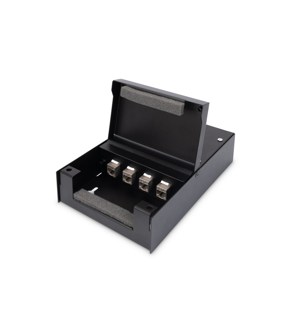 Los Puntos de Consolidación (CP) son puntos de recogida para cableado estructurado de edificios, especialmente en el sector comercial o industrial. Estos elementos centrales de los sistemas de cableado se utilizan en edificios y oficinas diáfanas como puntos de conexión o distribución para estaciones de trabajo. La caja del punto de consolidación DIGITUS® está diseñada para alojar 4 módulos trapezoidales. La caja se puede utilizar como montaje en pared, en techos, suelo radiante o como versión de escritorio. Con los accesorios opcionales (AN-25188), también es posible el montaje en un carril DIN. Esta es una solución rentable y flexible para una amplia gama de áreas y aplicaciones.