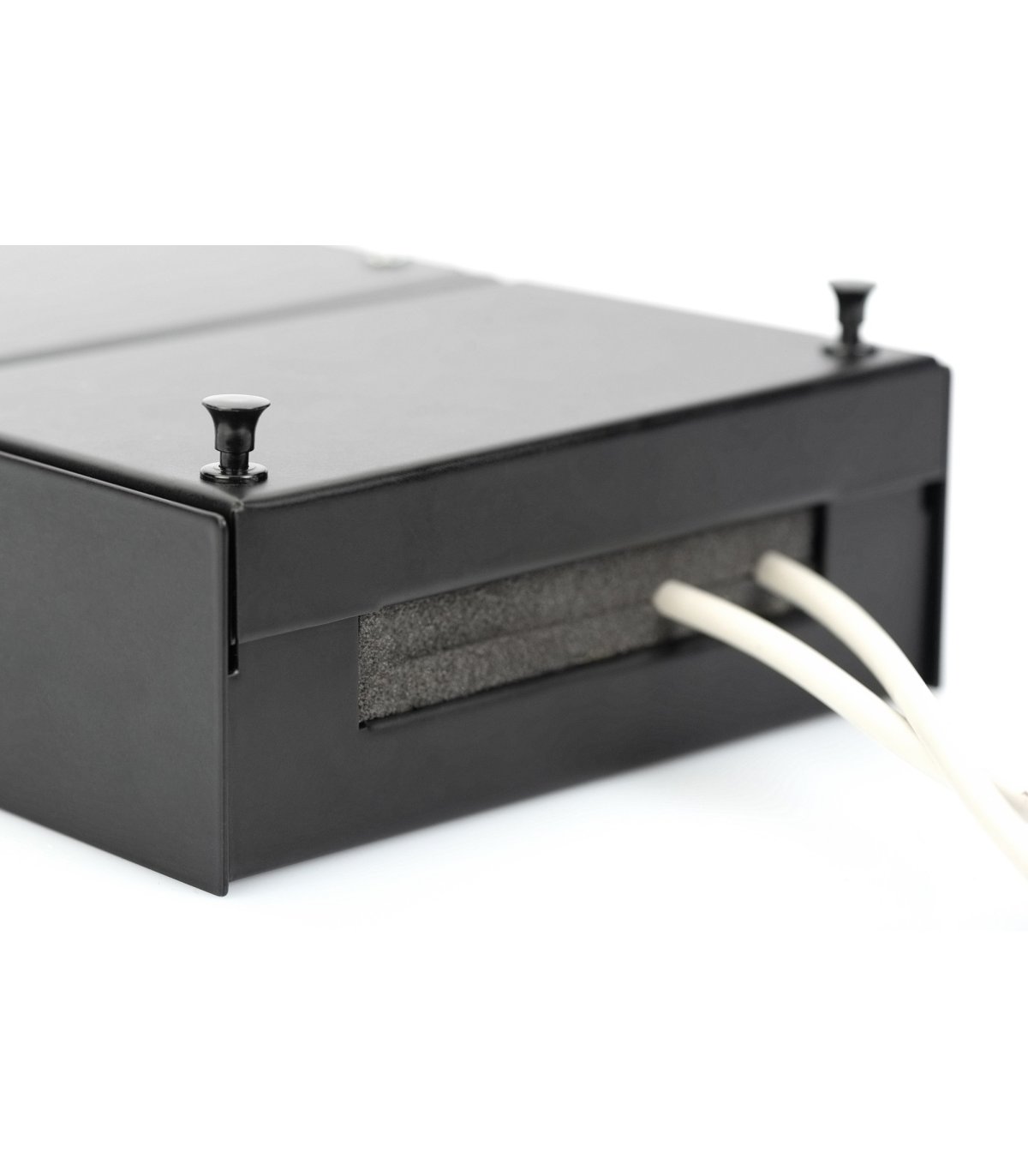 Caja de acero robusta con tapa con bisagras y alivio de tensión del cable