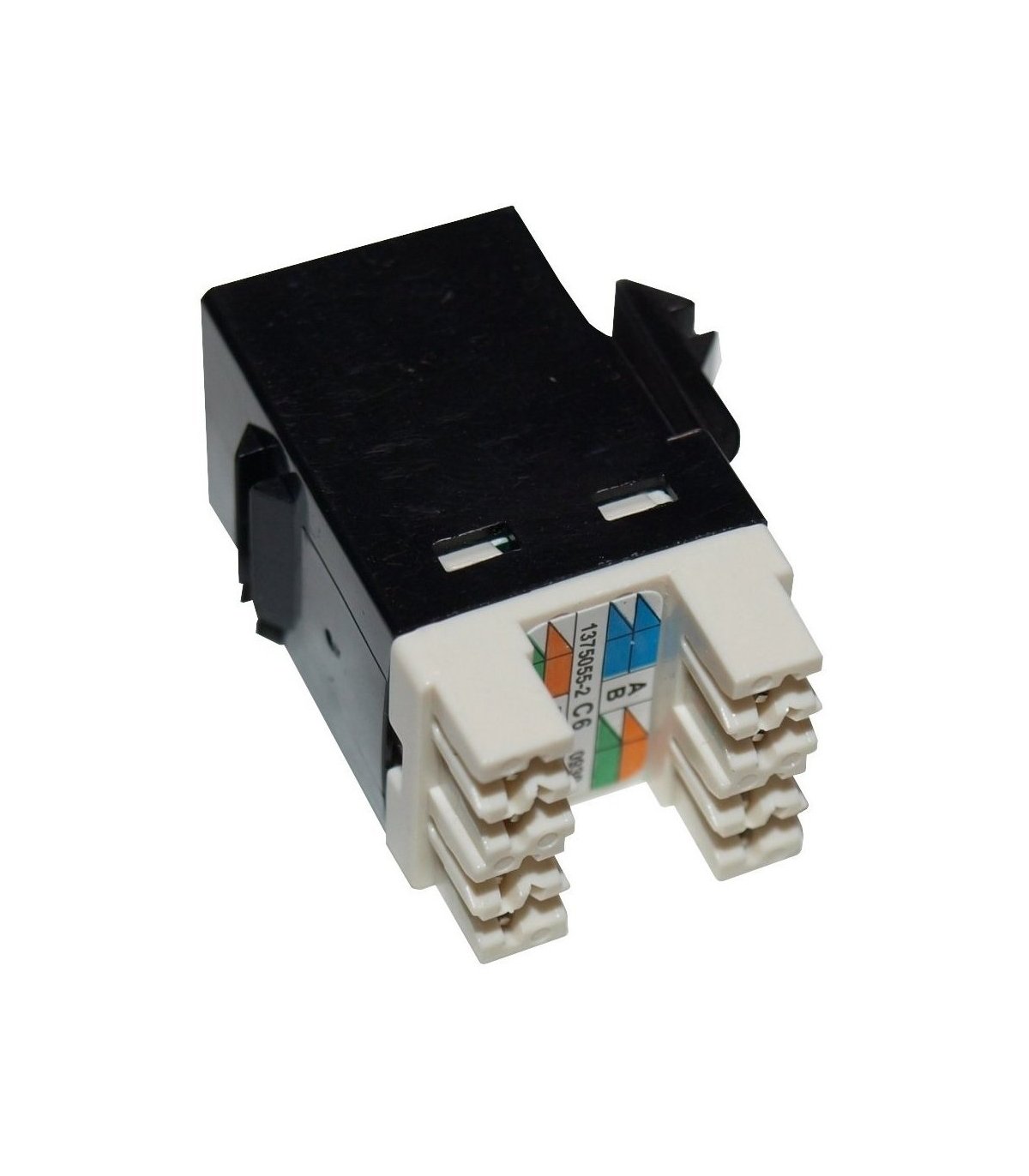 Conector RJ45 Hembra tipo Keystone CAT6 UTP para patch panel tipo AMP. Color Negro. Ángulo 180º