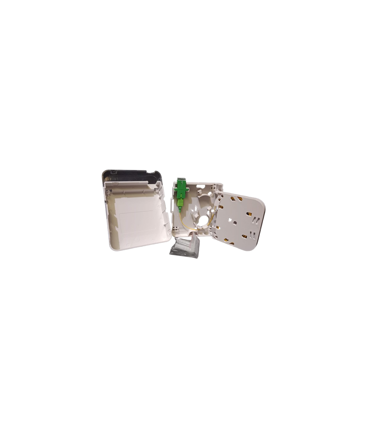 Con un acabado en blanco RAL 9003, esta caja no solo es funcional, sino que también se adapta a una variedad de decoraciones y estilos de instalación. Su diseño ergonómico y su color neutro permiten que se integre sin problemas en cualquier espacio, manteniendo un aspecto profesional y ordenado. La combinación de su construcción robusta y sus características prácticas la convierte en una opción ideal para quienes buscan una solución confiable y eficiente para la gestión de conexiones de fibra óptica.
