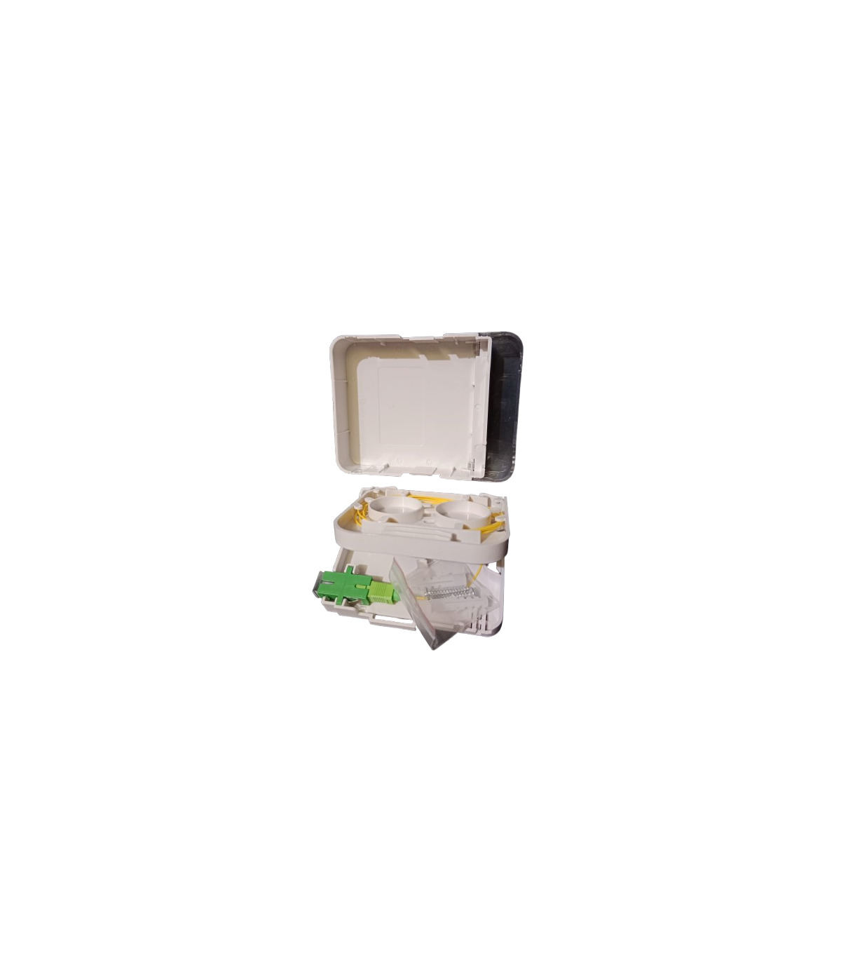 Caja FTTH con 1 conector SC Simplex más pigtail de 1metro y tapa protectora. Incluye cassete