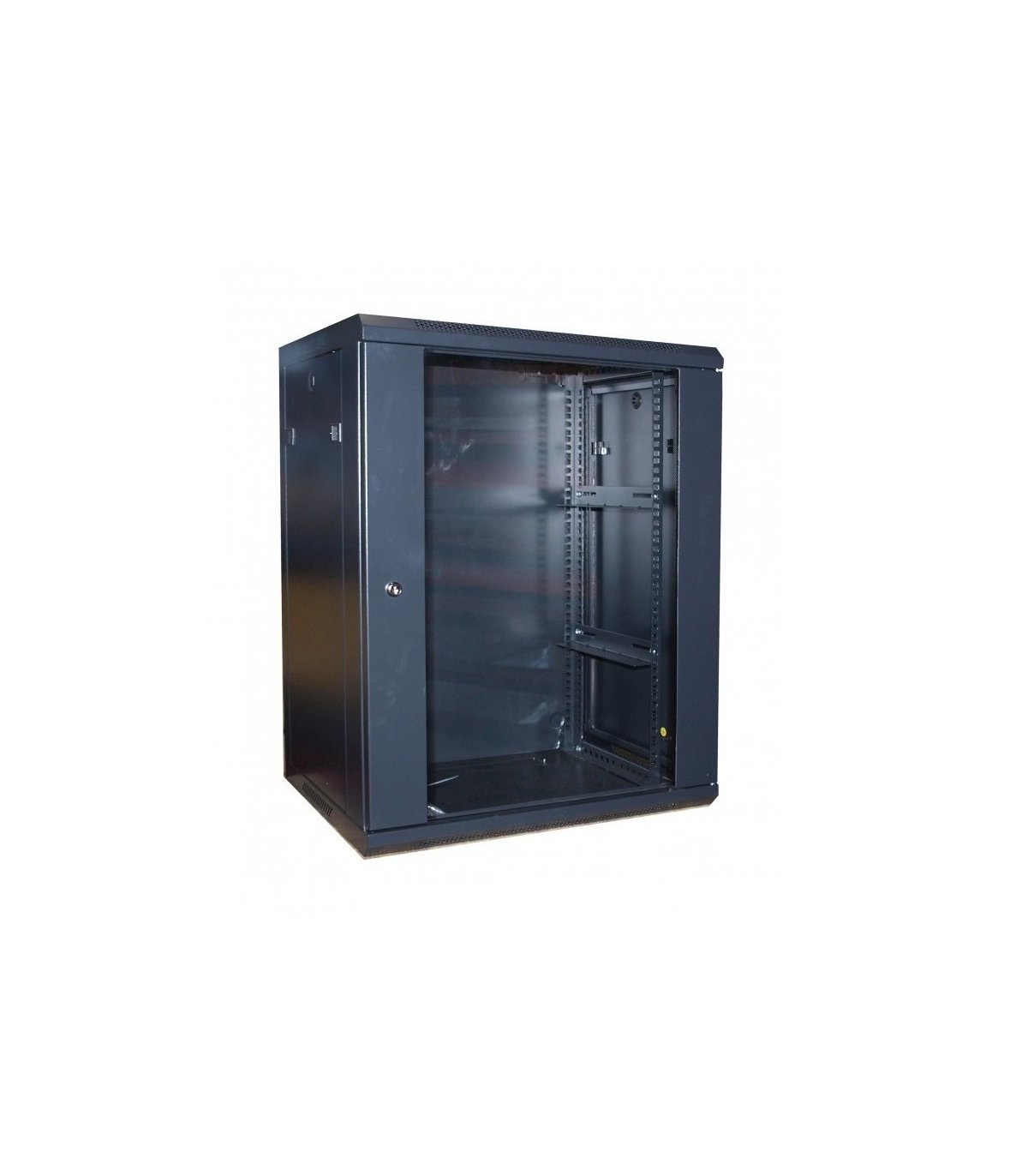 - Armario rack mural con ancho de perfil estándar de 19” con accesorios, diseño y acabado de calidad.