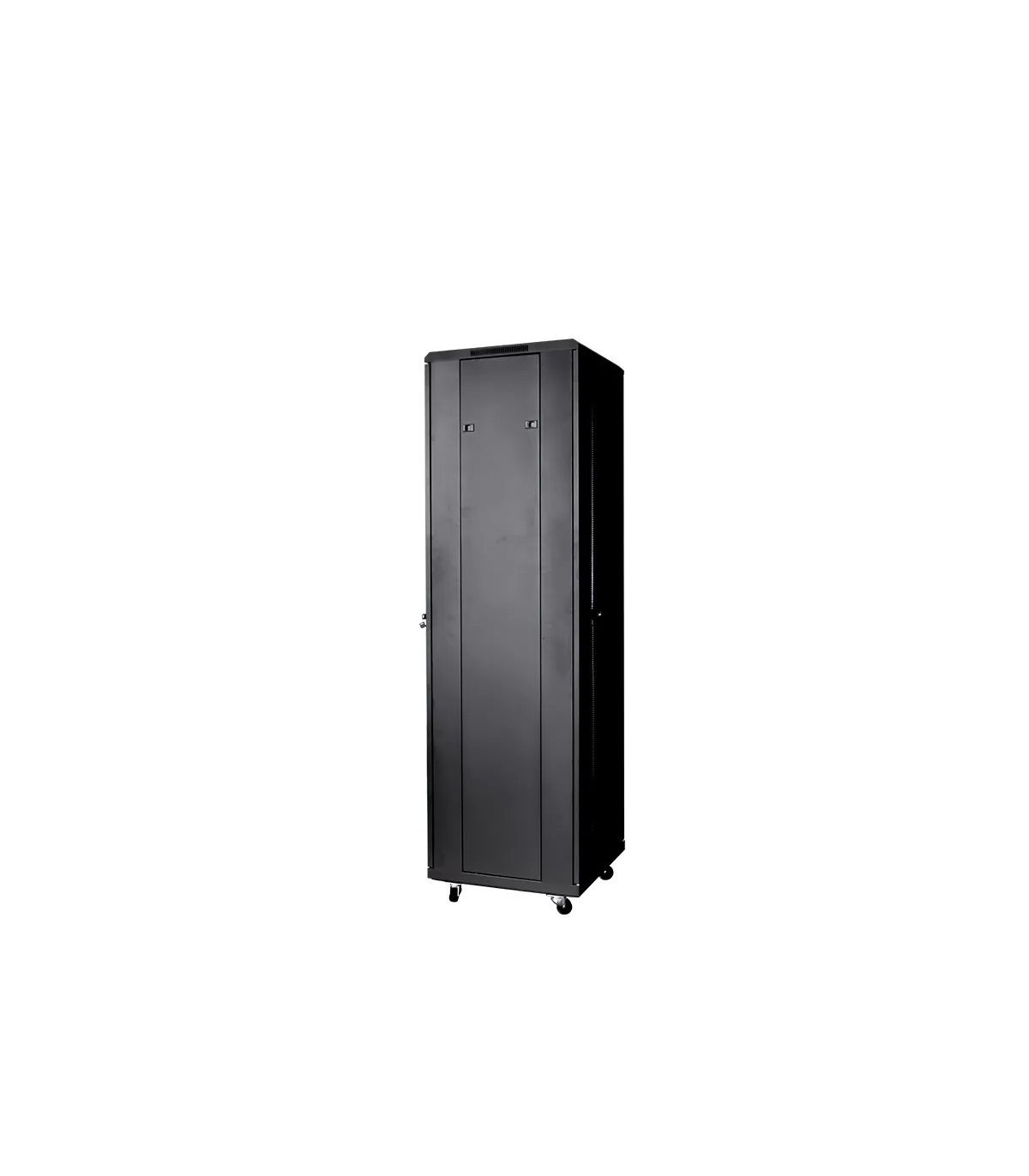 Este armario cumple con estándares de referencia (ANSI/EIA-310 y normas IEC/EN aplicables) y certificaciones ambientales CE y RoHS, lo que lo hace apropiado para instalaciones profesionales y salas técnicas. Las puertas perforadas optimizan el flujo de aire para refrigeración activa y, combinadas con ranuras en techo y suelo para cableado, facilitan la implementación de estrategias de gestión térmica recomendadas por organismos del sector como Uptime Institute.
