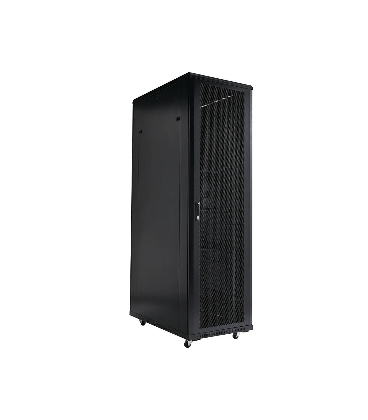 Racks KLIVES; 42U 600X1000 con puerta delantera y trasera perforada está diseñado para entornos donde se requieren equipos de gran profundidad y alta densidad. Con fondo exterior de 1000 mm y perfiles desplazables, permite configuraciones que acomodan servidores y chasis profundos sin sacrificar gestión de cables ni ventilación. El formato 42U corresponde a aproximadamente 1.867 mm de altura útil (42 x 44,45 mm por U), lo que facilita el montaje de grandes granjas de servidores o equipos de telecomunicaciones.
