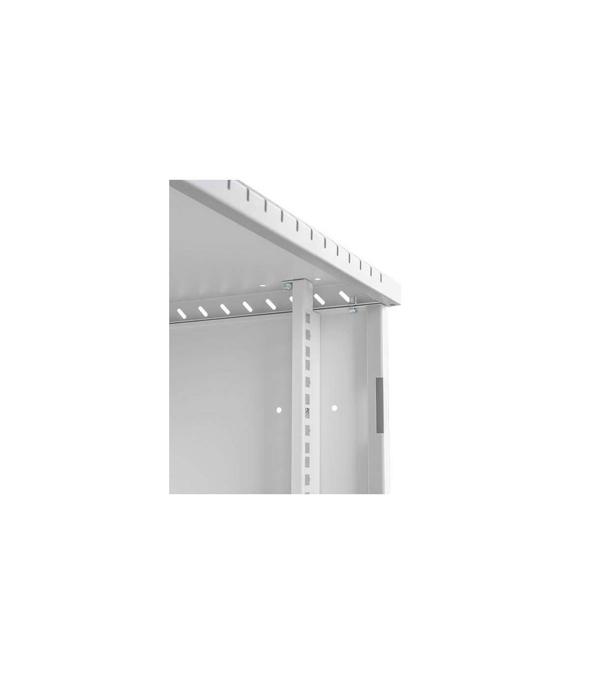 Una ventaja indiscutible de los armarios RACK es un pre-corte fácil de romper para el cableado en su parte inferior y superior (cada uno con dimensiones: 80 mm x 50 mm +/-1/2 mm). Esto brinda varias posibilidades para la entrada de cables al tiempo que garantiza una instalación de cableado conveniente y un ensamblaje fácil y correcto de cualquier dispositivo.