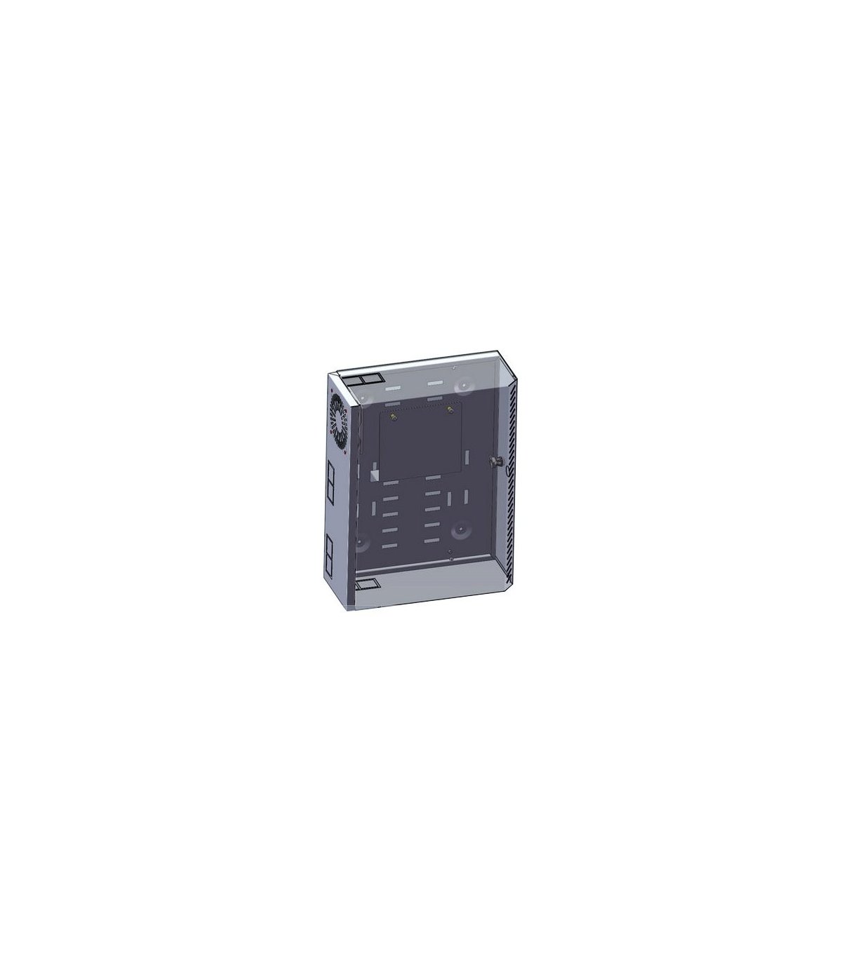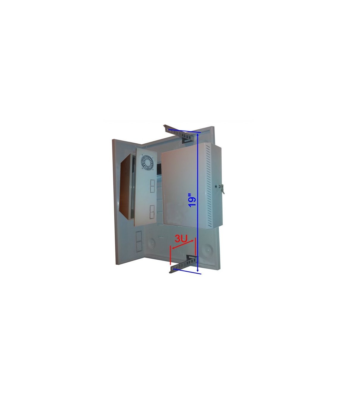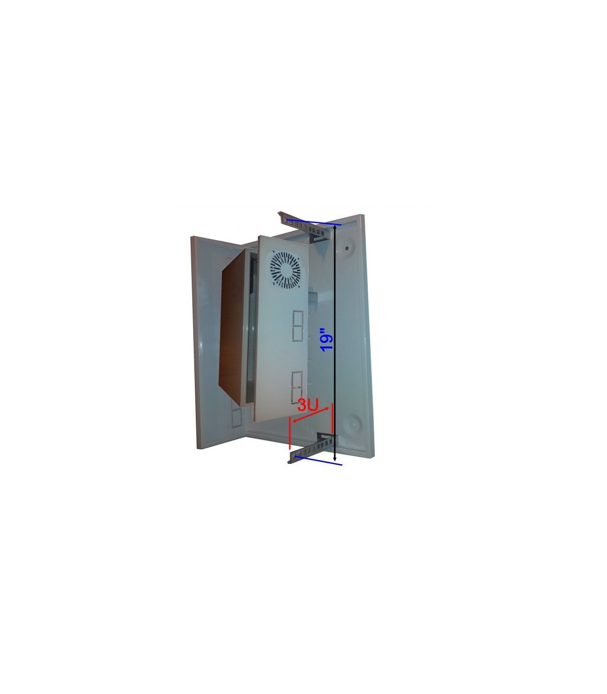 Armario rack mural 3U posición vertical con tapa y ventilador.