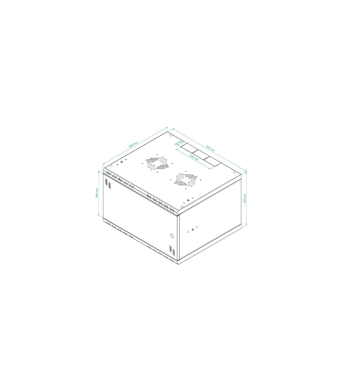 El armario puede atornillarse fácilmente con tacos (no incluidos) gracias a los orificios de la parte posterior. El armario permite un montaje de cuatro puntos en la pared, lo que aumenta su estabilidad. La puerta puede montarse tanto en el lado derecho como en el izquierdo y, gracias a las bisagras especiales con muelle, el montaje y desmontaje es extremadamente sencillo. Los raíles RACK pueden montarse en tres profundidades, lo que permite un ajuste libre de los equipos en su interior. Hay ranuras para ventiladores de 120x120 mm en la parte superior e inferior (distancia entre orificios 105x105 mm) para garantizar una refrigeración adecuada del equipo. Además, los pasacables de 50x80 mm (3 en la parte superior y 3 en la inferior) facilitan la gestión de los cables. El armario está equipado con perforaciones en la parte frontal y los laterales, lo que resulta crucial para la disipación del calor.