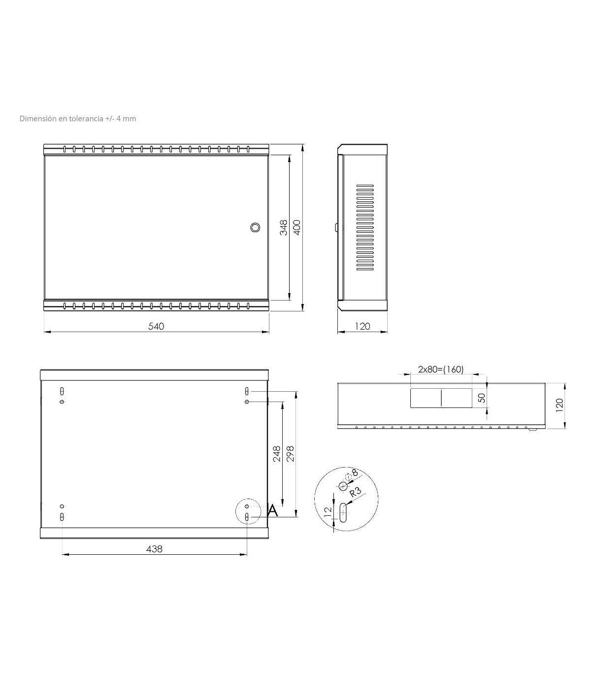 Rack Mural 19" 2U F120 vertical con perfiles desplazables.