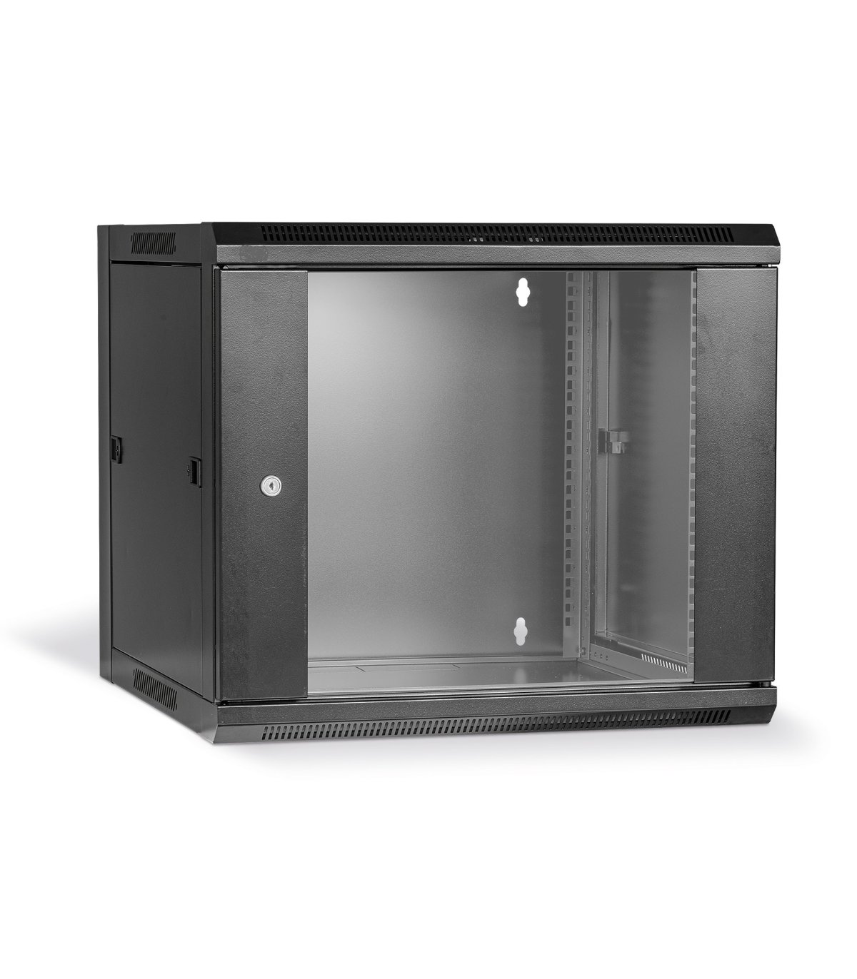- Armario rack mural con ancho de perfil estándar de 19”, diseño y acabado de calidad.