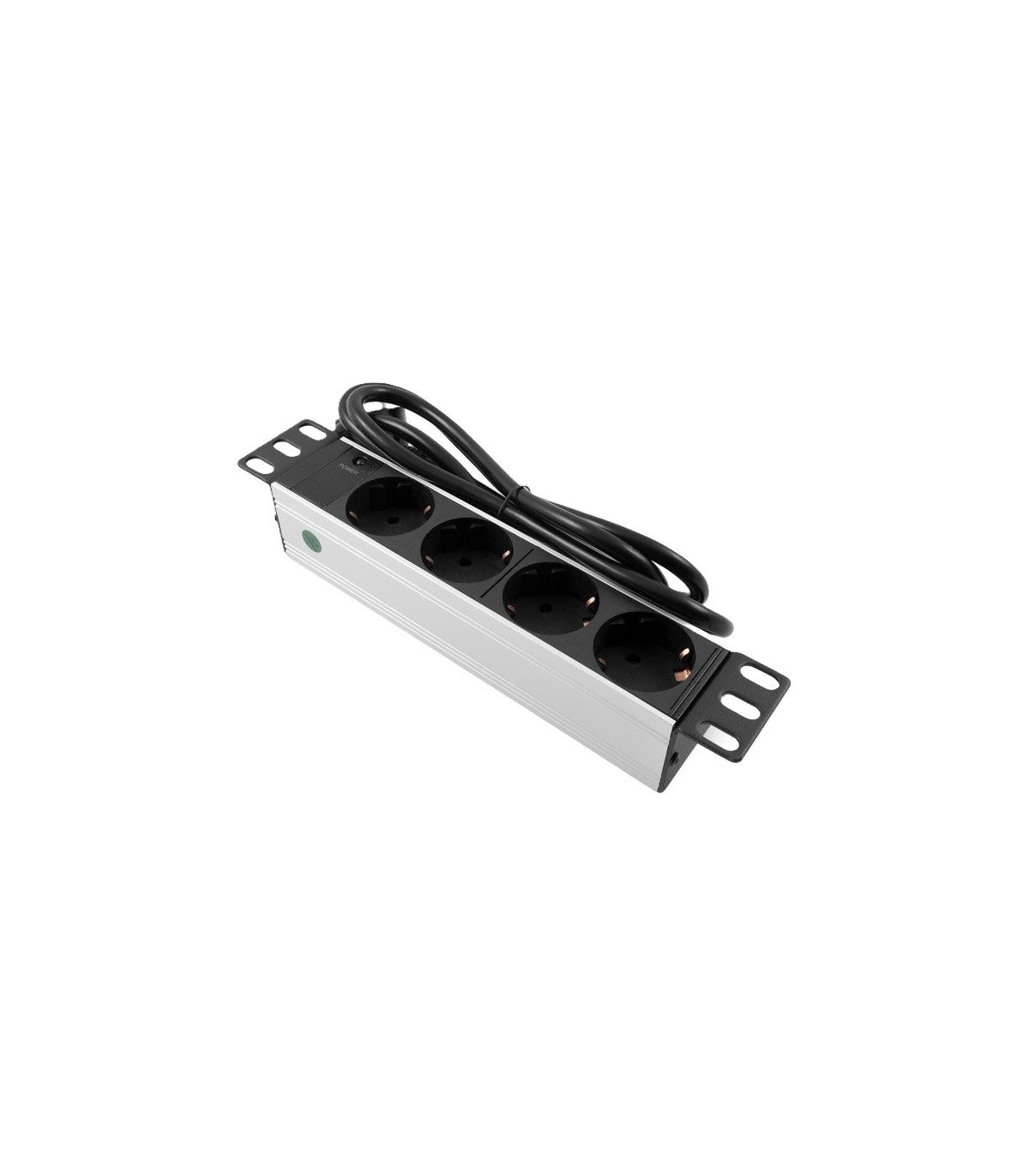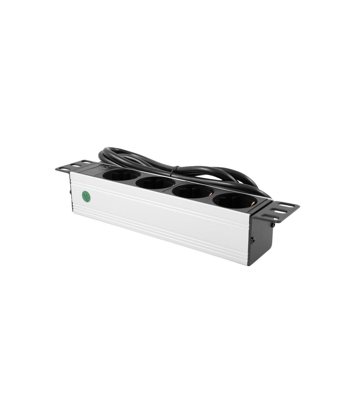 Regleta 10" 1U, 4 schukos. Sin interruptor Perfil de aluminio