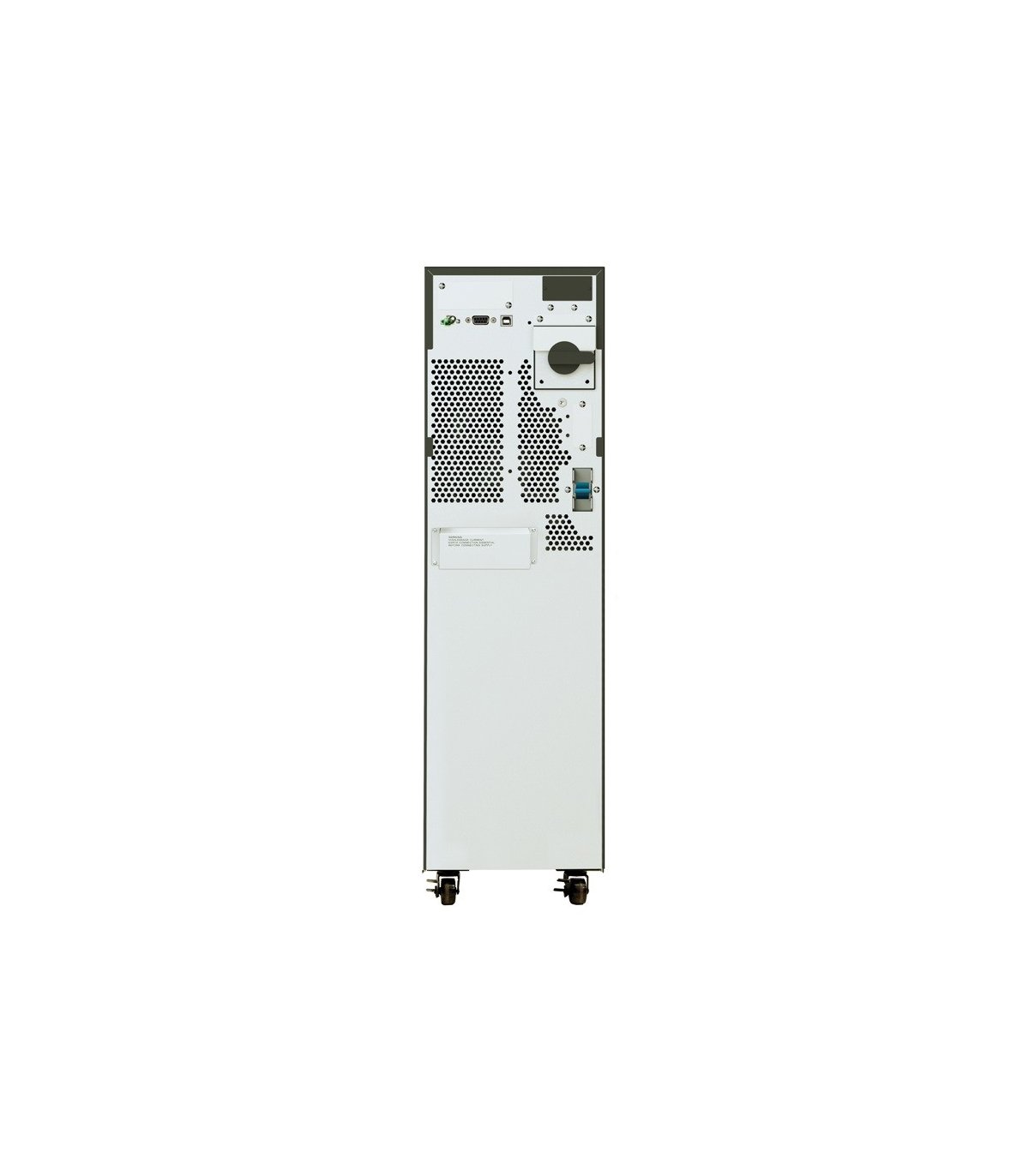 Sistema de Alimentación Ininterrumpida UPS EVO DSP PLUS 6.0 - Potencia 6 KVA PF 1. DSP de tecnología On Line (VFI), 94% de eficiencia, entrada / salida 230 / 230Vac 50 / 60Hz, dimensiones 19x68.8x36.9 cm, peso 57 Kg, contiene 16 baterías 12VDC 7.2AH, extensión de autonomía a través de cajas de baterías adicionales (opcional ) Pantalla LCD gráfica multifunción, derivación estática y manual, contacto EPO para apagado de emergencia, puertos de comunicación USB y RS232 para control de UPS y programación de encendido / apagado a través del software gratuito TecnoManager. SNMP, contacto seco o tarjeta MODBUS (opcional).