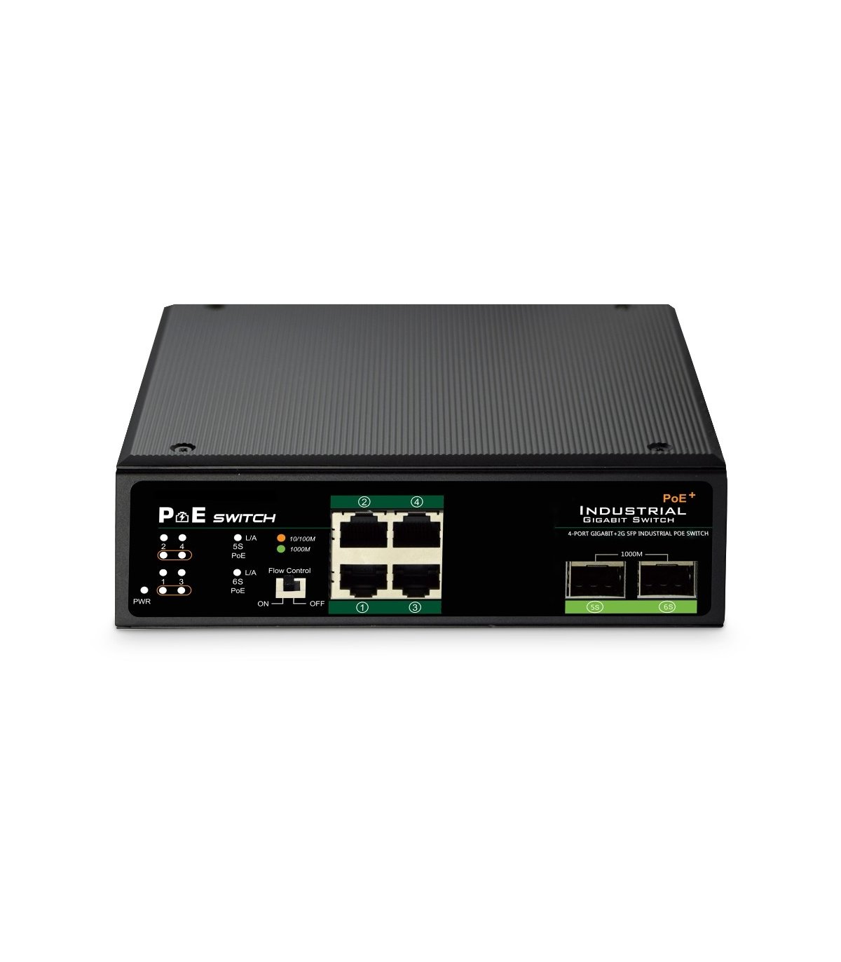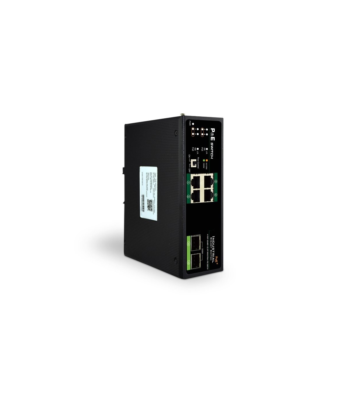 •     Switch Industrial 4 Puertos Gigabit PoE+ y 2 puertos SFP uplink