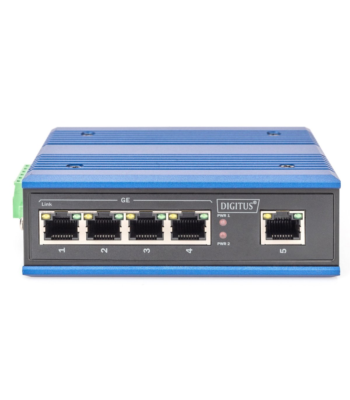 Switch industrial de 5 puertos GIGABIT Carril DIN, rango de temperatura extendido