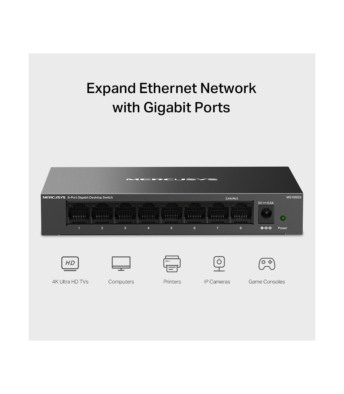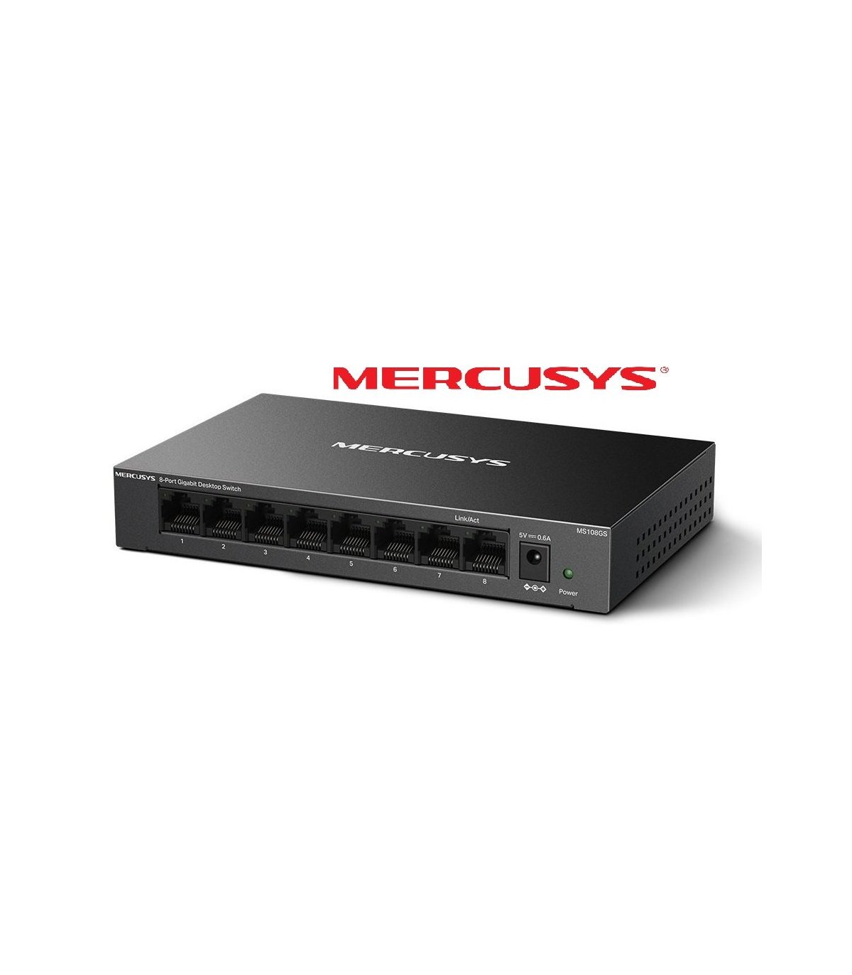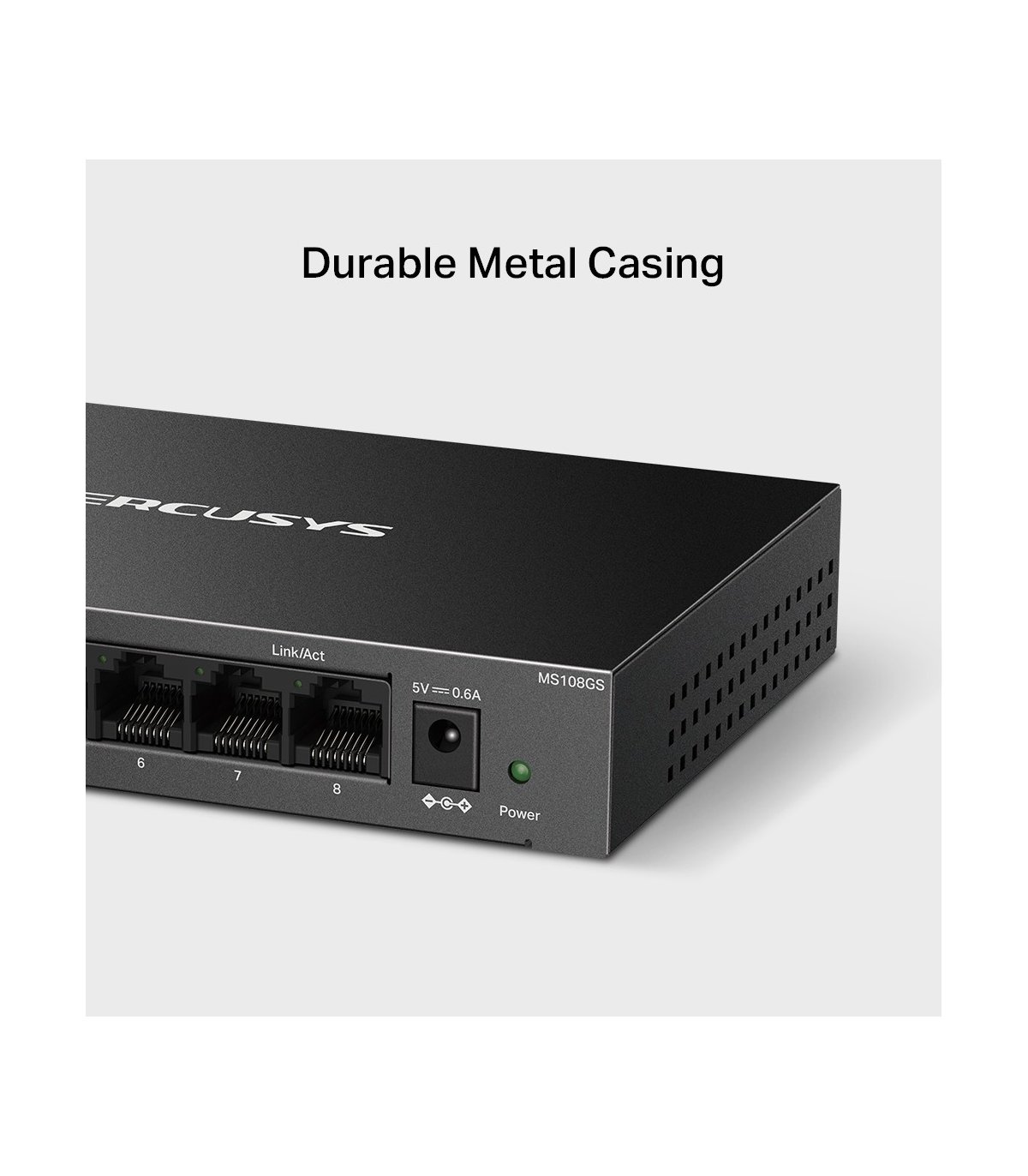 Switch No Gestionable Mercusys Ms108gs 8p 10/100/1000 Ethernet Mini Desktop Carcasa Metálica. Bidireccional completo (Full duplex), Montaje de pared/mesa